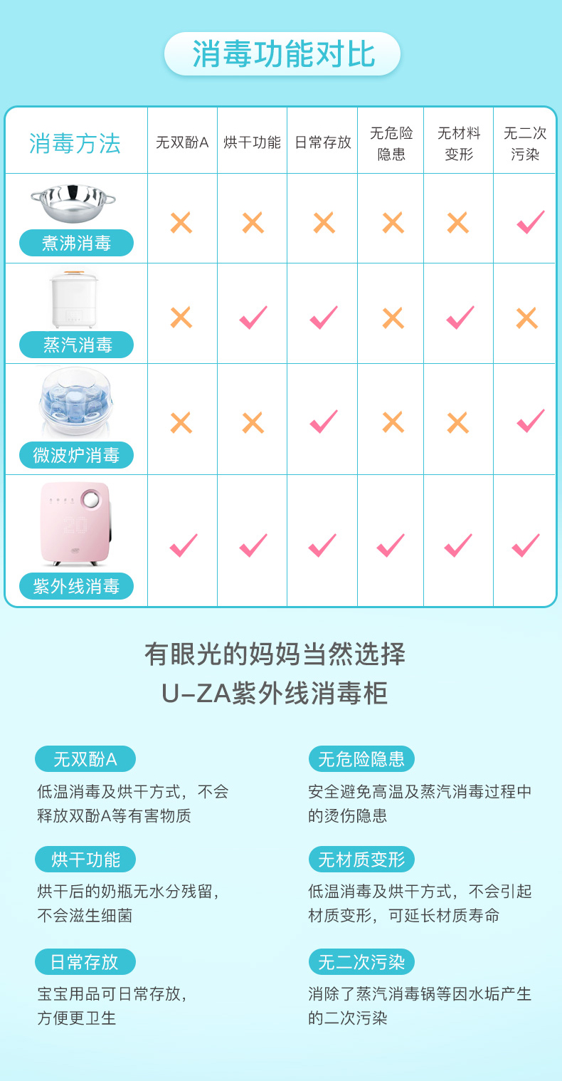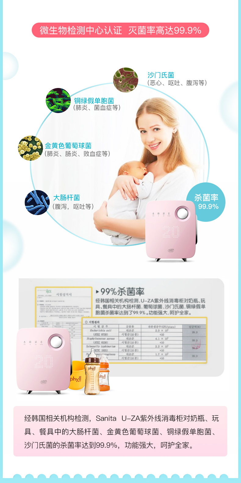 hin大容量,杀菌率99.9%,双风扇加倍烘干,无菌保管时刻安心,操作简单,低噪节能,多种贴心设计,只为“孕傻”的你。